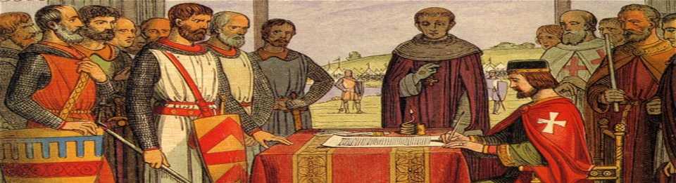 | 1215 | Inglaterra | Rei João sem-Terra obrigado pelos nobres ingleses a assinar a Magna Carta. |
